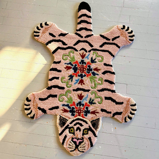 Floral White Tiger Wool Rug