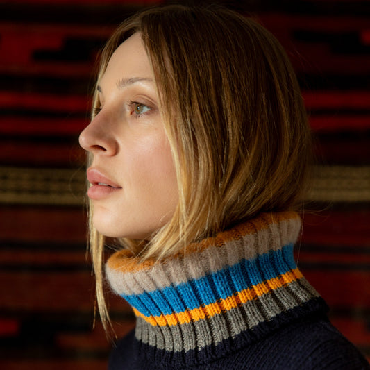 Navy Roll Neck Knit Jumper