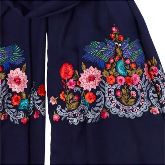 Bird of Paradise Pashmina - Navy