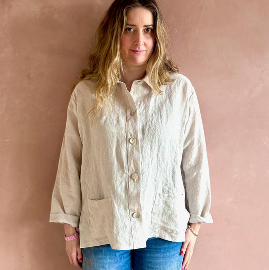 Irish Linen Shacket, Beige