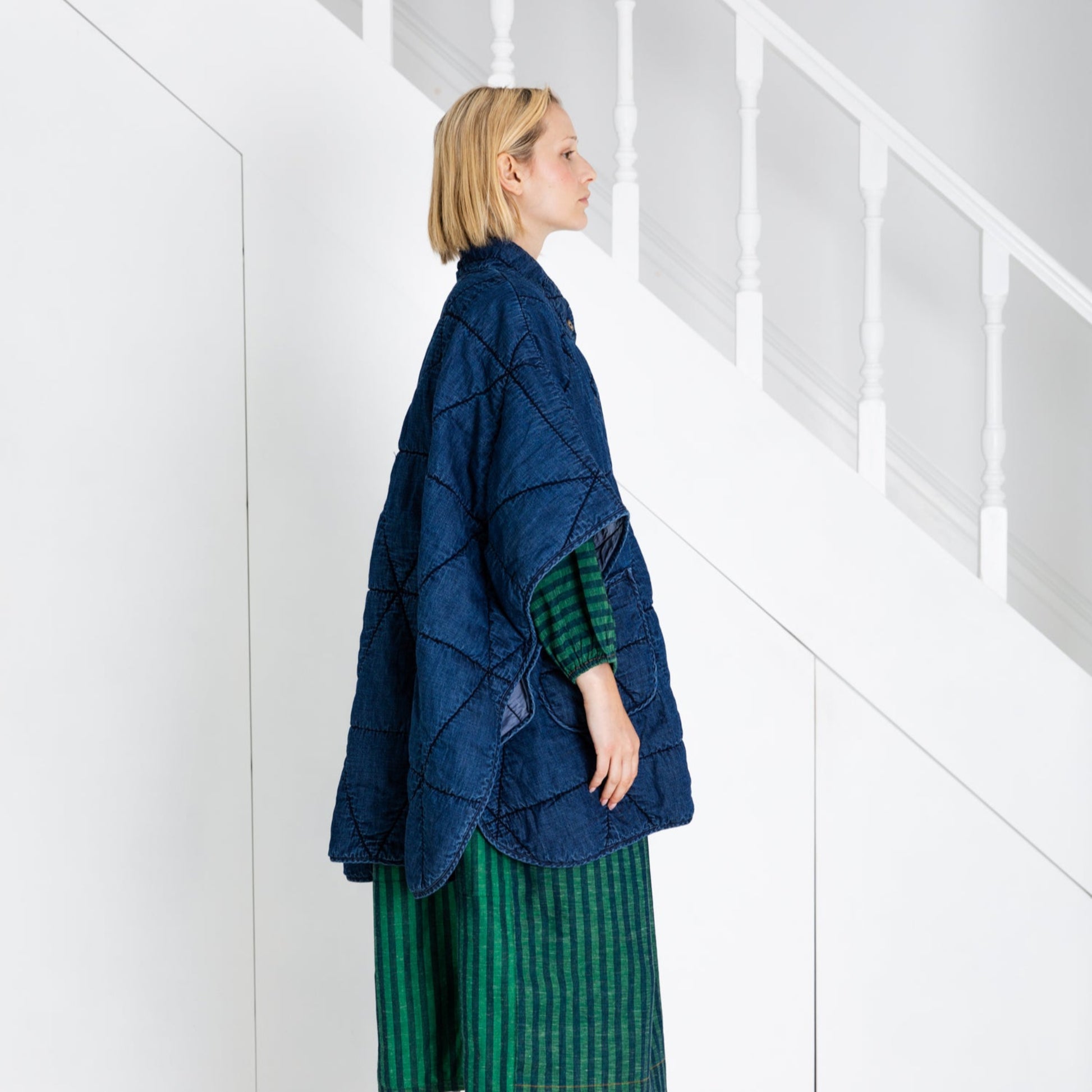Soft, quilted cotton in a beautiful blue denim. Roomy and very cool for this Autumn Winter.