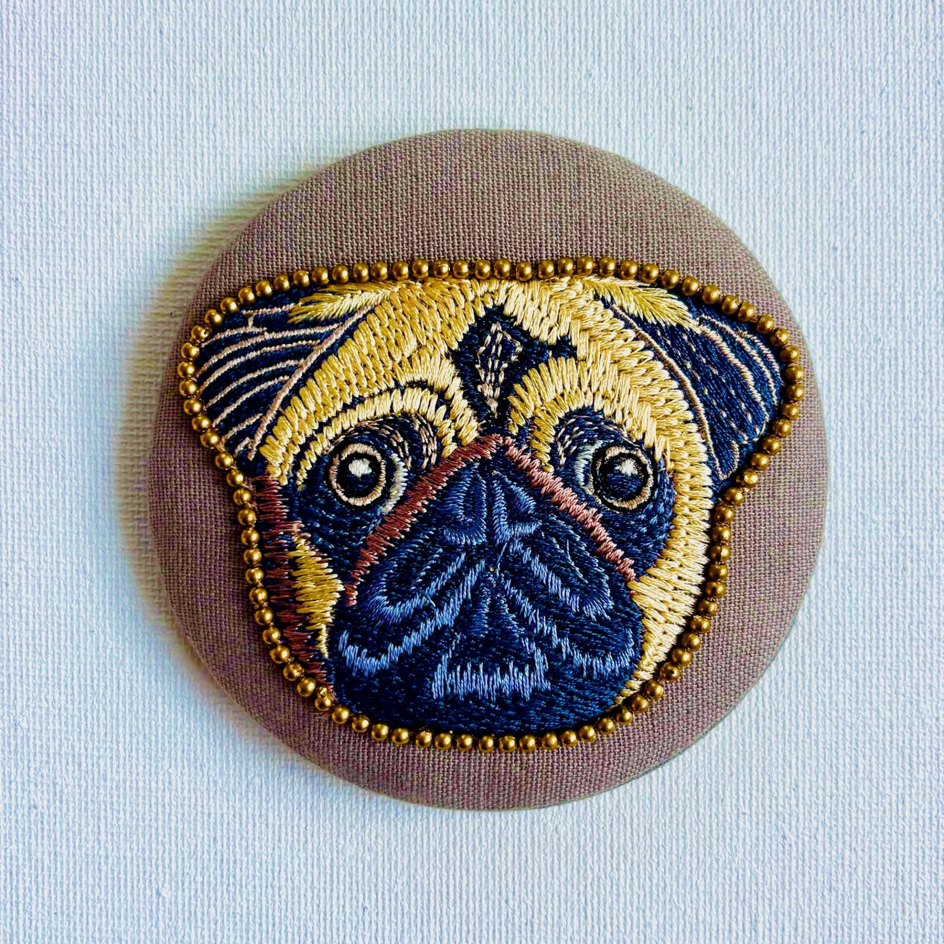 Hand embroidered Pocket Mirror, ideal for a handbag. Eccentric and useful. 9 cm x 9cm